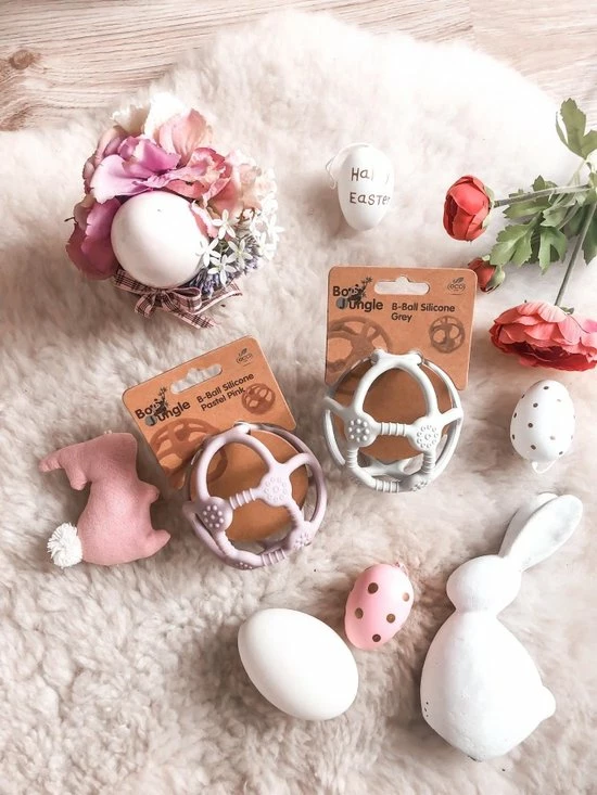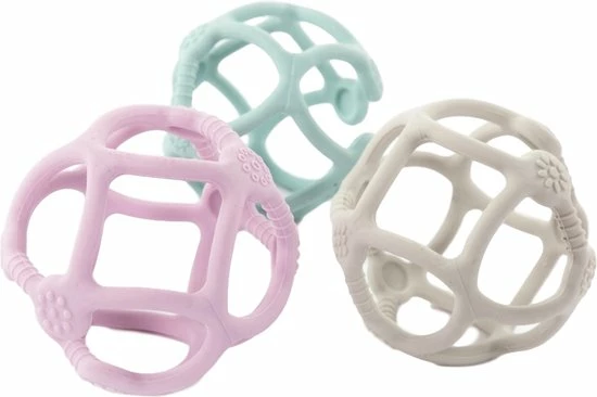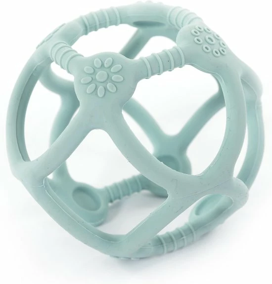 Onze siliconenbal stimuleert zowel bijt- als grijpzintuigen. Het vermindert de pijn en het ongemak van doorkomende tanden en