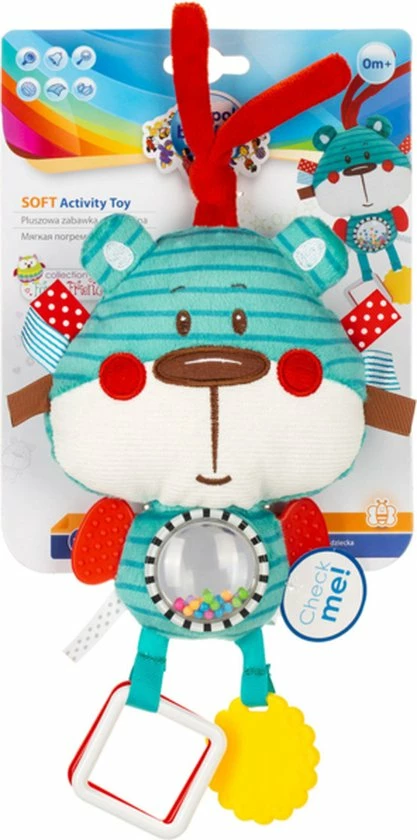 Het lichte en zeer kleurrijke educatieve speelgoed van FOREST FRIENDS zal je kind lang plezier bezorgen. Het is gemaakt van hoogwaardige materialen met verschillende texturen. Het heeft veel interactieve elementen die de psychomotorische ontwikkeling van het kind stimuleren. Het is uitgerust met twee flexibele bijtringen en een spiegel die is verbonden met een rammelaar. Het kan aan een babybedje of kinderwagen worden bevestigd. Het speelgoed is verkrijgbaar in 2 uitvoeringen. Ontworpen voor kinderen van 0m +.