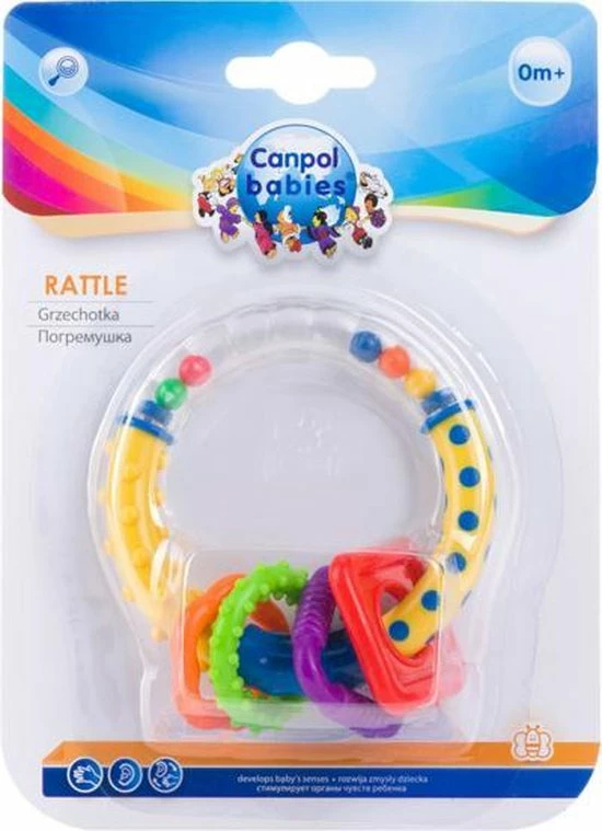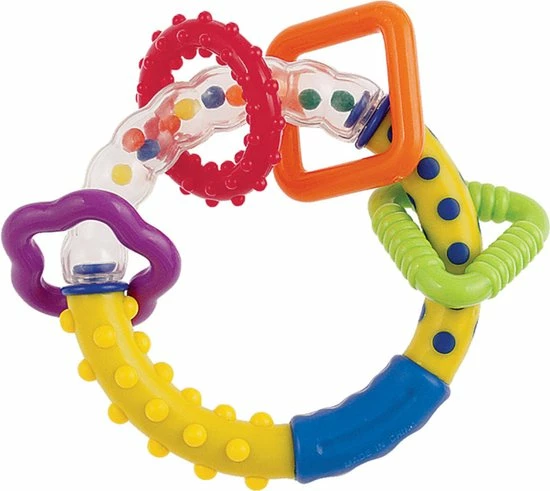 Het is gemakkelijk voor een kind om het in zijn handen te grijpen. De rammelaar is kleurrijk, heeft beweegbare elementen met verschillende texturen die de peuter aanmoedigen om te bewegen en te spelen en zijn psychomotorische ontwikkeling te stimuleren. Het heeft licht afgeronde vormen. De transparante delen van het speelgoed bevatten kleine, kleurrijke elementen die tijdens het spelen bewegen en een aangenaam ratelend geluid creëren. Ontworpen voor kinderen van 0 m +.