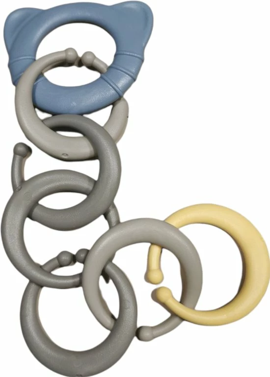 Aan de bijtringketting kunnen ook andere speeltjes worden bevestigd