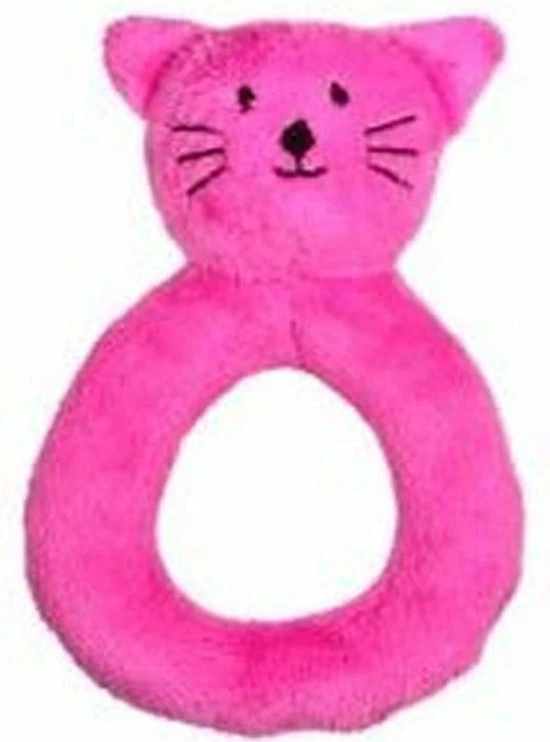 Leuke, zachte fuchsiaroze rammelaar met een kattenkopje van het Nederlandse merk Global Affairs.