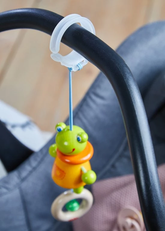 Dankzij de zeer eenvoudig aan te brengen bevestigingsringen kunnen wagenspanners of klein speelgoed, zoals rammelaars en hangfiguren, snel aan de kinderwagen of het autostoeltje worden vastgemaakt.
