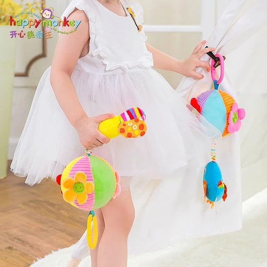 Happy Monkey Kinderwagen Rammelaar/ Speelgoed/ Speeltjes/sinterklaas/ Kerstcadeau/Cartoon Pluche Dier Rammelaar Bel Wandelwagen Baby Winkelwagen/ Speelgoed Voor Baby / Muzikal Speelgoed/ Vogel