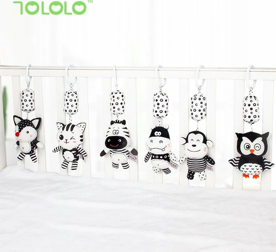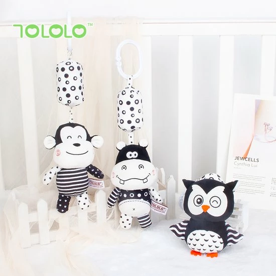 Happy Monkey Speelgoed Baby 0 Jaar/schoencadeautjes Sinterklaas/ Rammelaar/ Speelgoed/ Speeltjes/ Kerstcadeau Voor Baby/Cartoon Pluche Dier Rammelaar Bel Wandelwagen Baby Winkelwagen/ Baby Speelgoed/ ===apzwart Wit Speelgoed/ Apje