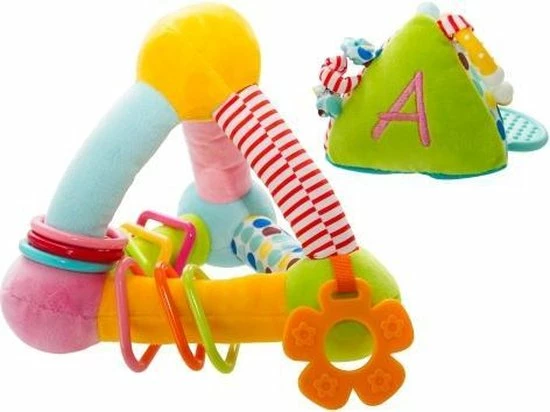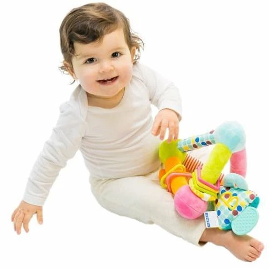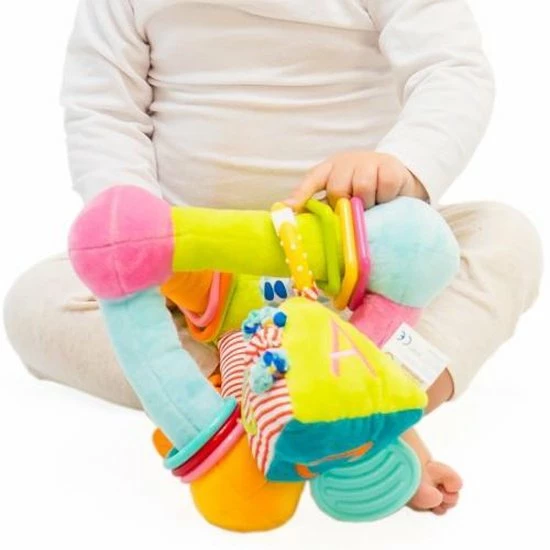 Dit babyspeelgoed is gemaakt van stof Het is zacht en nodigt uit om vastgepakt te worden door de baby (knuffelen mag ook).