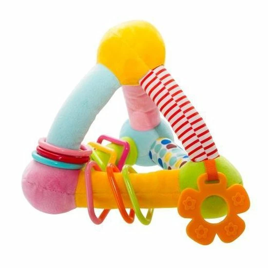 Wat een sensatie om te zien hoe je baby alles verkent wat hij aanraakt met zijn kleine handen. Deze piramide van stof met activiteiten helpt de baby elke dag iets nieuws te ontdekken. Het babyspeeltje bestaat ui 2 onderdelen die in elkaar passen. In 1 van de armen van de driehoek zit een geluidje.
