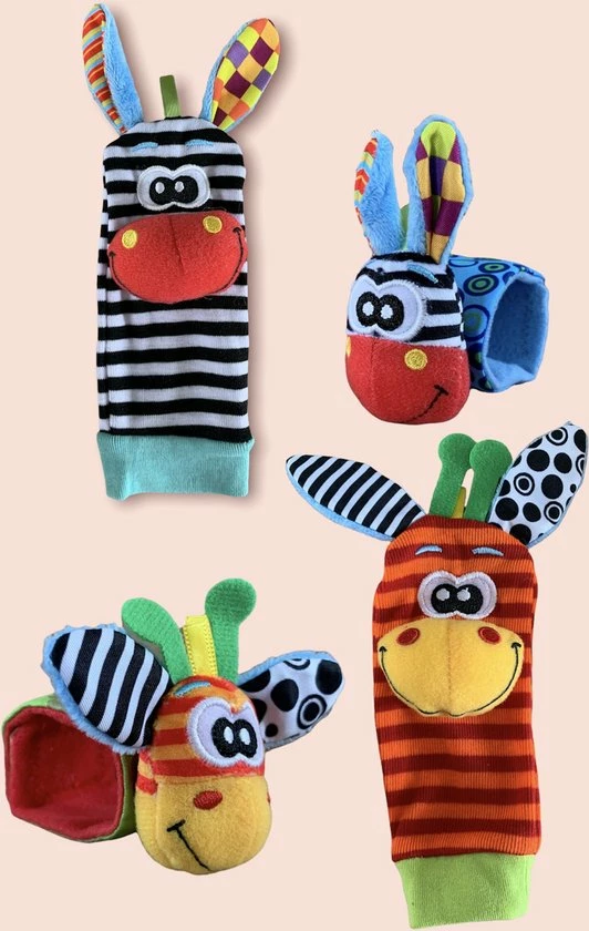 Zodra je baby of peuter zijn of haar handjes en voetjes ontdekt, zal hij of zij uren speelplezier beleven met deze hippe maar zachte rammelaars.