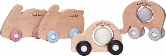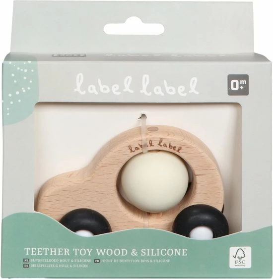 - Label Label Hout & Silicone Bijtspeeltje op Wielen