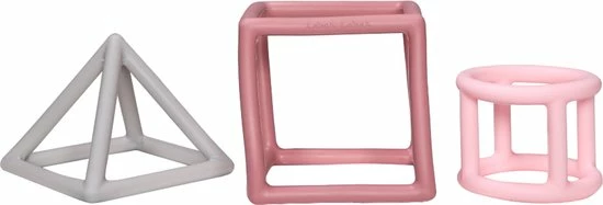 Wat zal je kleine een speelplezier beleven met deze leuke geometrische bijtringen van Label Label! De bijtvormen zijn gemaakt van silicone.