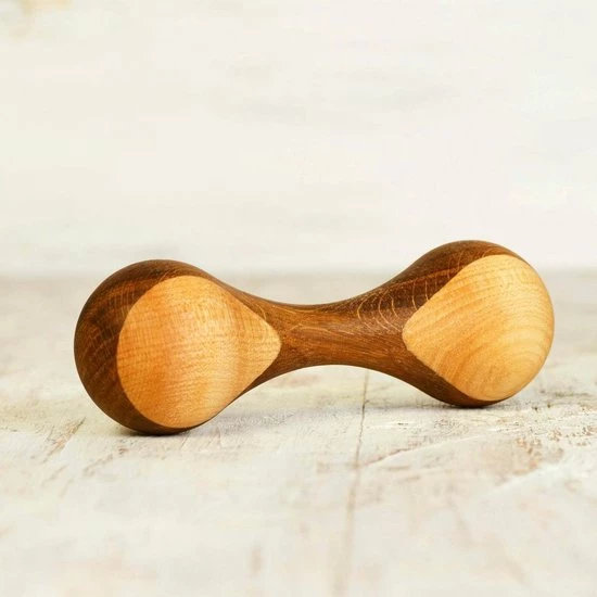 Deze prachtige biologische houten baby rammelaar is een echte traktatie voor uw baby. Dit mooie houten speelgoed geeft de warmte van 2 houtsoorten – esdoorn en eik (basis). Deze houten rammelaar is super glad en van hoge kwaliteit hout waardoor hij geen splinters afgeeft. De rammelaar maakt een aangenaam geluid. Dit geluid trekt de aandacht van uw baby en helpt bij het ontwikkelen van zijn of haar luistervaardigheden. Deze houten rammelaar is geschikt voor kinderen vanaf 5-6 maanden. Het gebruikt draagt bij aan de ontwikkeling van de motoriek van het kindje. Deze houten rammelaar heeft het de perefcte maat en vorm voor kleine handjes.