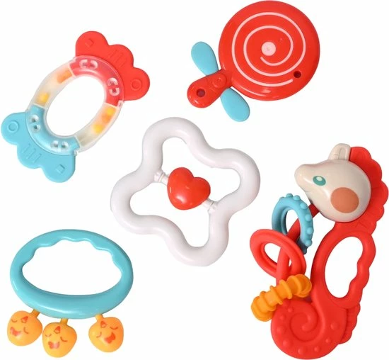 Alle bijtringen hebben voelbare structuren en zijn makkelijk in de hand te houden. Verder is het erg fijn om in het speeltje te bijten als de tandjes doorkomen. Hierdoor zal het tandvlees van je kindje minder pijn doen. Wanneer je kleine de rammelaars op en neer beweegt, zal je een leuke rammelgeluidjes horen. Geschikt voor kindjes vanaf de geboorte.