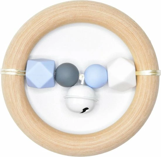 Een kindje is volop bezig met de ontwikkeling van zijn zintuigen. Met deze rammelaar worden er vier van de vijf zintuigen gelijk geprikkeld: horen, zien, voelen en proeven! Diameter van de ring is 10cm, de kralen zijn silicone (BPA-vrij) en het belletje is van geverft staal. De ring van de rammelaar is gemaakt van beukenhout, dit splintert niet. Dit maakt de ring bijtveilig.