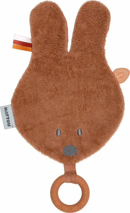 Schattig en functioneel. De siliconenring begeleidt baby’s en jonge kinderen wanneer ze voor het eerst tandpijn hebben. Het ruwe oppervlak en het zachte siliconenmateriaal zijn perfect om op te kauwen. Bovendien biedt een zachte massage van het tandvlees verlichting bij onaangename tandpijn. De siliconen bijtring heeft de perfecte afmeting voor kleine handjes en vingertjes, waardoor hij zowel thuis als onderweg een leuk speelkameraadje is. Het knuffeltje in de set kan aan de bijtring worden bevestigd of ervan worden verwijderd via een kleine gleuf.