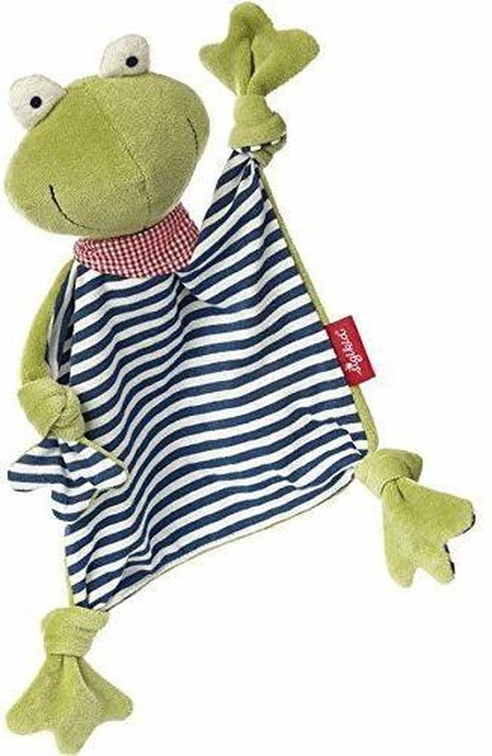 Een vrolijke, grasgroene kikkerfamilie vult de sigikid Natural Love-collectie aan, gemaakt van gecertificeerd biologisch katoen. Een knuffelzacht doekje mag in deze collectie niet ontbreken. De geknoopte armen en benen zijn aan de voorkant gemaakt van grasgroen microfiber pluche, aan de achterkant is een blauw wit gestreepte jersey van 100% katoen gebruikt. Deze combinatie zorgt voor een geweldig visueel en haptisch contrast. Samen met het grote hoofd en de bevestigde ogen creëren ze een breed scala aan grijpopties en nodigen ze je uit om te zuigen, strelen, knuffelen en troosten. De achterkant van het doekje vormt de grasgroene, knuffelzachte microvezelpluche. De rood met wit geruite katoenen sjaal is natuurlijk stevig vastgenaaid. De zachte speelkameraadjes uit de Natural Love collectie zijn gevuld met pure schapenwol. Het knuffellapje is geschikt voor baby’s vanaf de geboorte en wordt al snel een vaste metgezel voor dag en nacht. sigikid hecht bijzonder belang aan geselecteerde materialen en verfijnd design. Geaccrediteerde testinstituten voeren voortdurend tests uit in productontwikkeling en productie in overeenstemming met de speelgoedrichtlijn 2009/48 / EG. Op deze manier blijft sigikid trouw aan zijn motto: FIRST CLASS FOR KIDS.