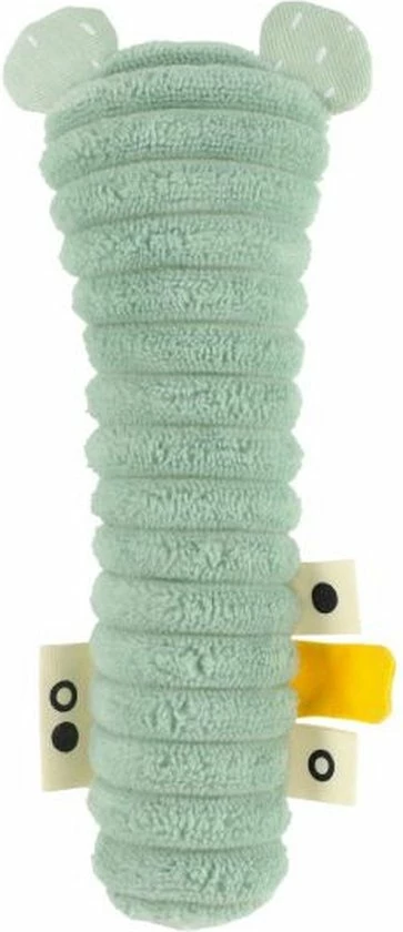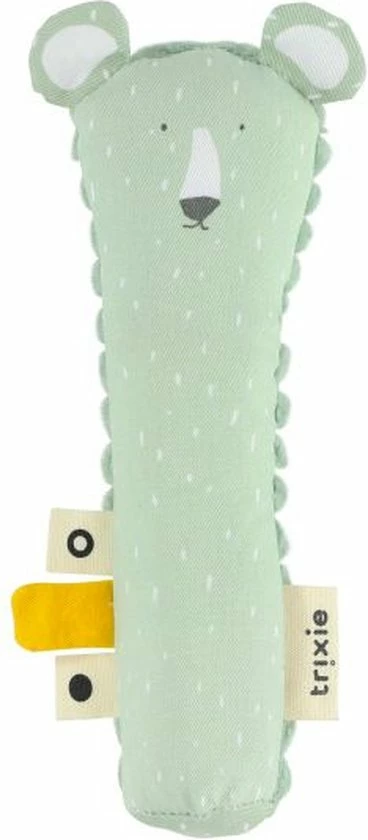 Zelfs de kleinste handjes kunnen dit kleine, zachte vriendje beetnemen. En wanneer je erin knijpt, komt er een kort, luid piepje uit.