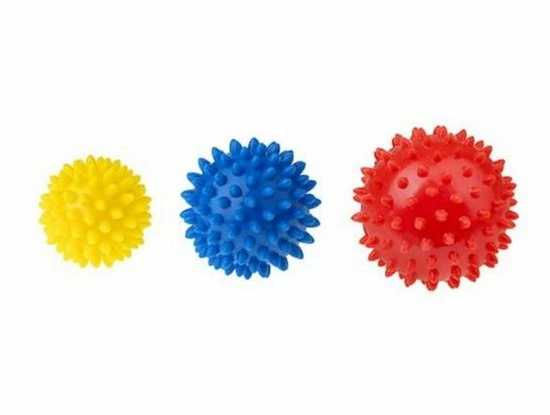 Spiked balls voor lichaamsmassage, revalidatie, fitnessoefeningen, yoga en sensorische integratietherapie. Ze zijn perfect om met kinderen te spelen, ze maken groepsactiviteiten aantrekkelijker. Speciale conische spikes stimuleren de sensorische receptoren en verbeteren de bloedtoevoer.